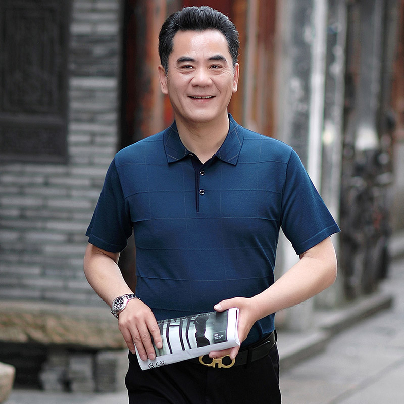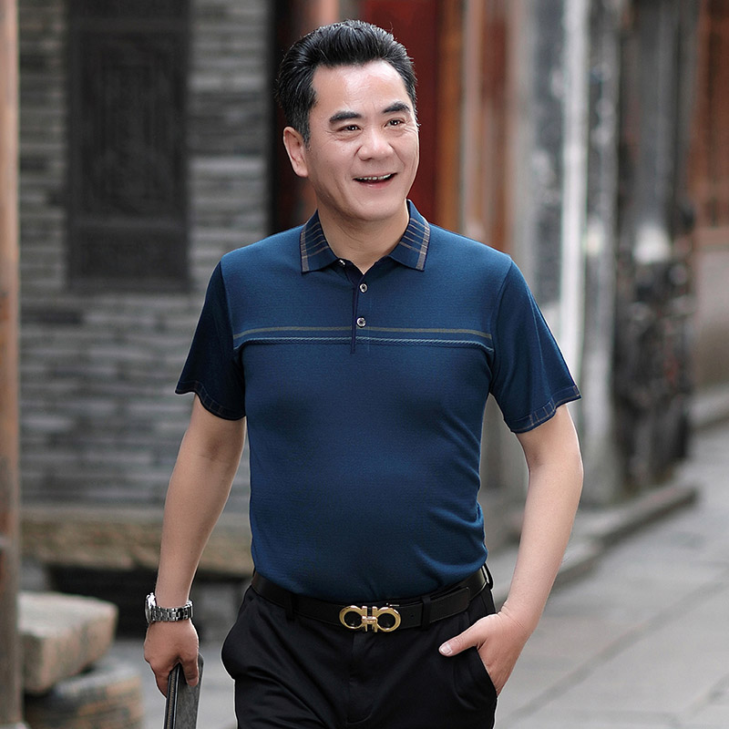 Dad summer short-sleeved T-shirt Middle-aged men's ice silk top clothing 40-50 years old Men's clothing for the elderly Father's Day