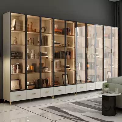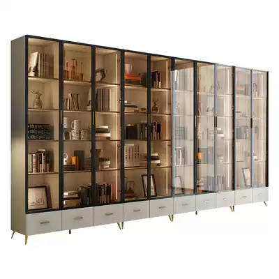 Simple modern light luxury glass door full-wall bookcase Great Northern Europe whole wall with door floor-to-floor study living room bookcase