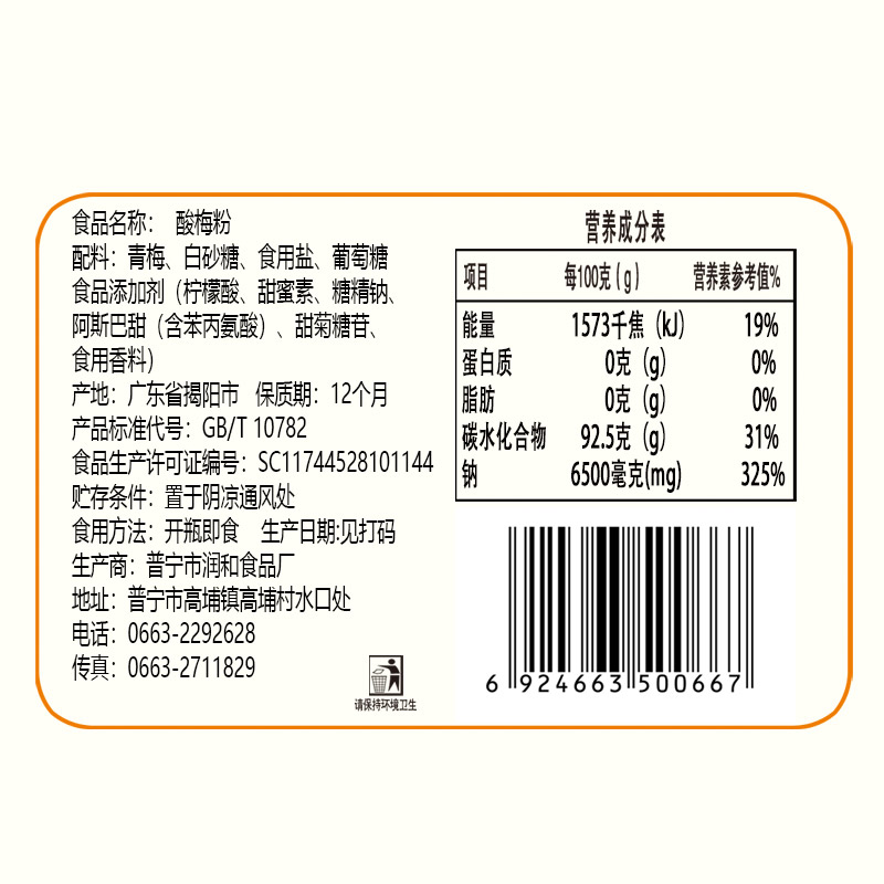 Sour plum powder 120g canned household dipped fruit Chaoshan ganmei powder words plum powder seasoning sprinkling powder bale ingredients