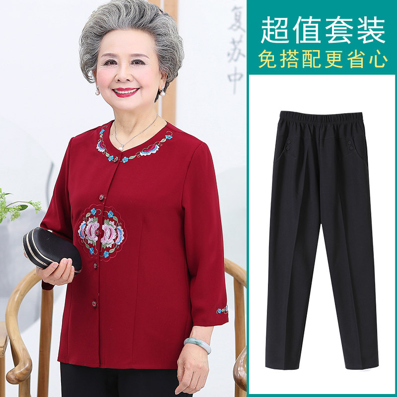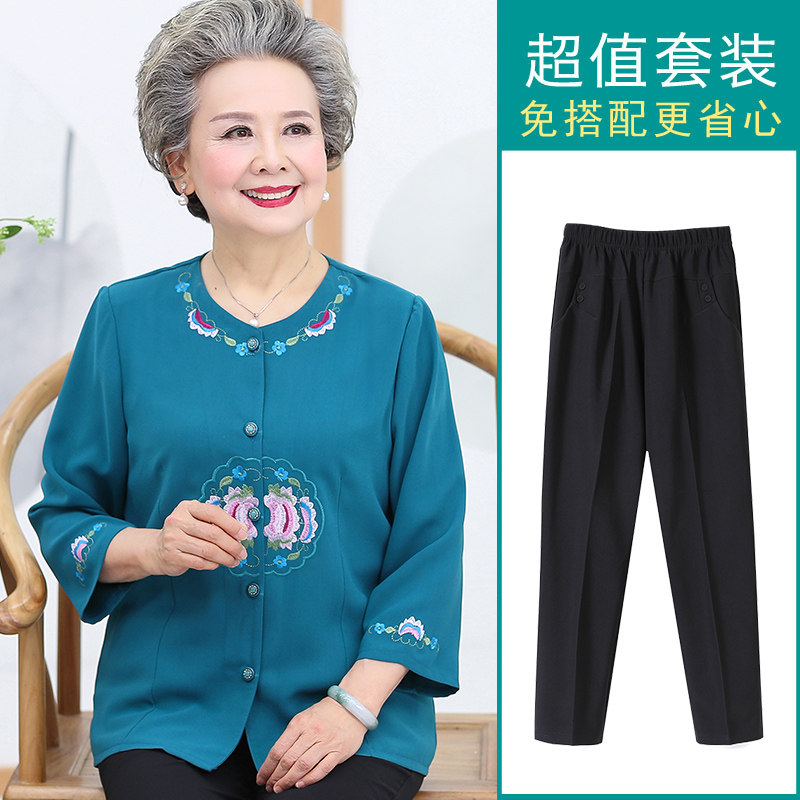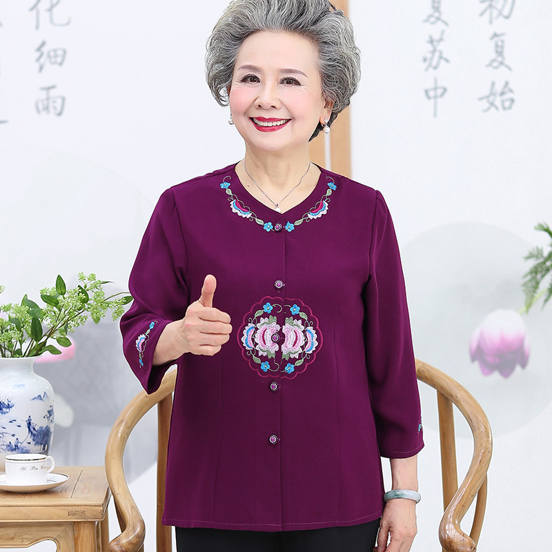 Grandma dress shirts 60-year-old 70 middle-aged female moms in spring summer 50% sleeves shirts old ladies' clothes