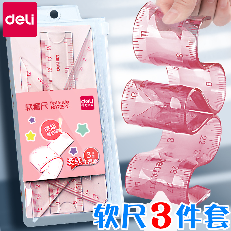 Powerful ruler soft ruler set primary school students with stationery cute triangle ruler 15cm bendable set of ruler four-piece set simple transparent high-value ruler 30cm multi-functional first grade school supplies