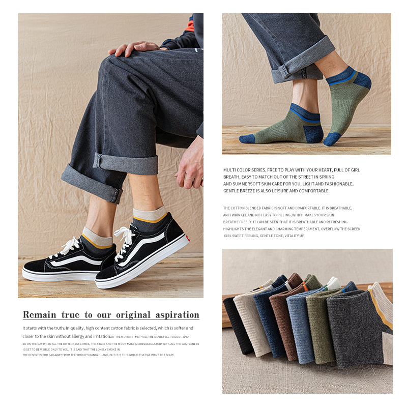 Cat People Socks Men's Summer Short Socks Retro Day Series Pure Color Invisible Socks Cotton deodorant Sweat Breathable Men Thin Socks
