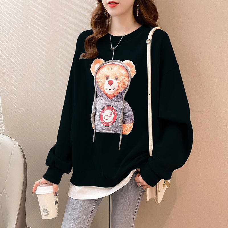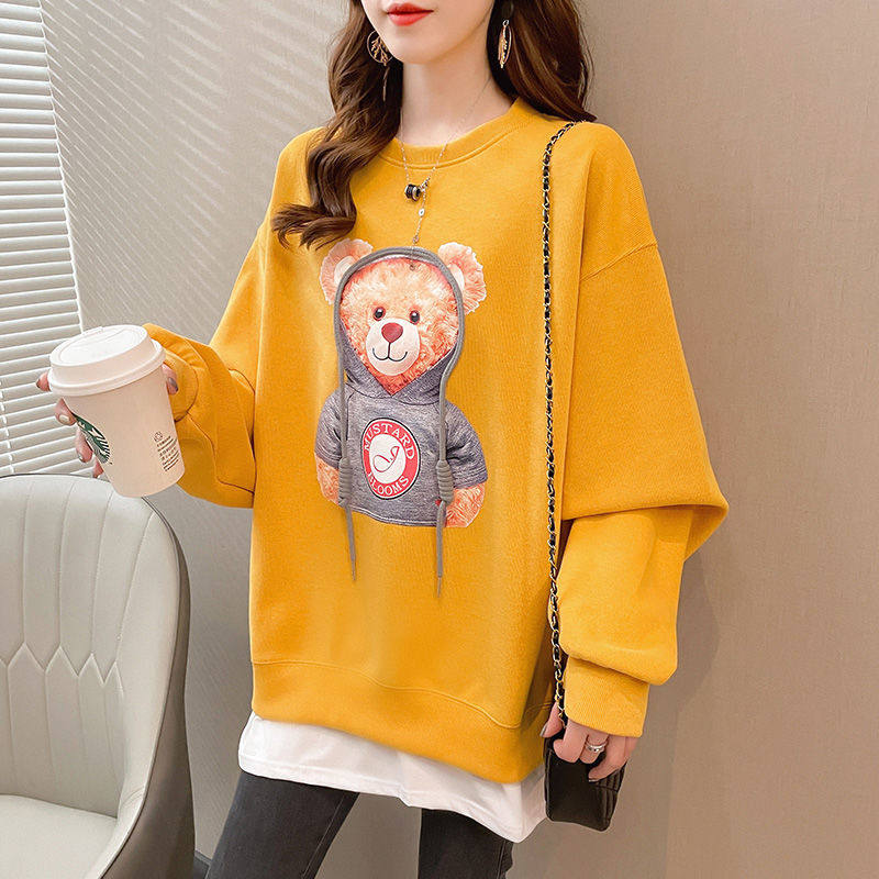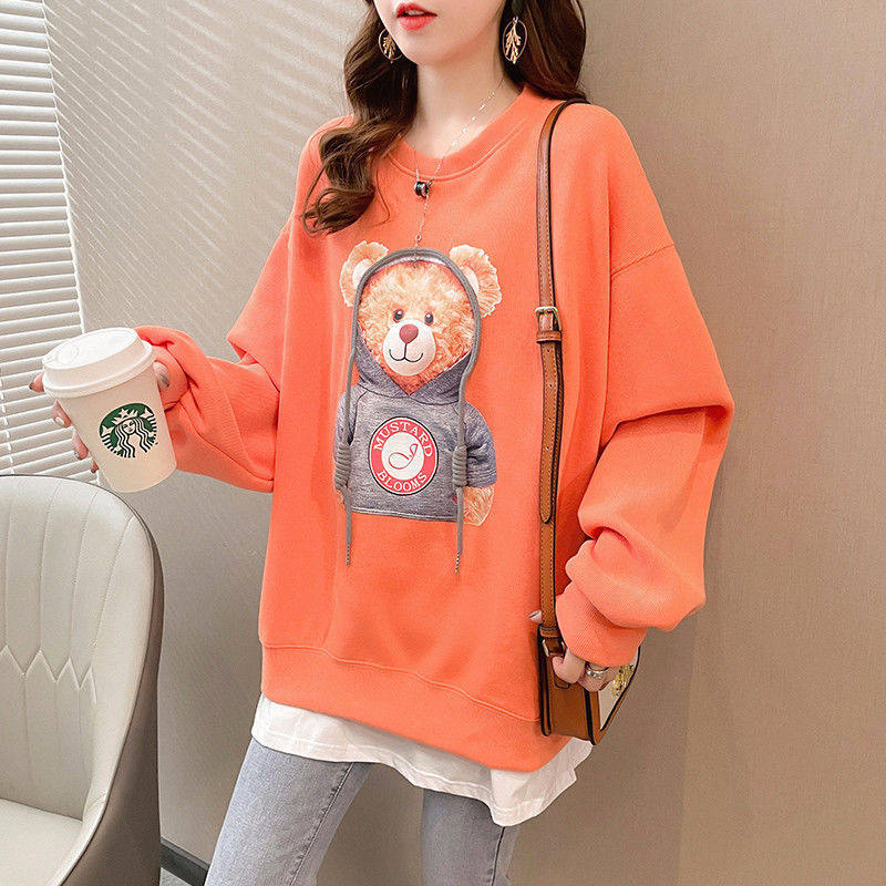 Spring and autumn thin section fake two-piece sweater women's clothing 2021 new fried street bears age-reducing loose ins clothes trend