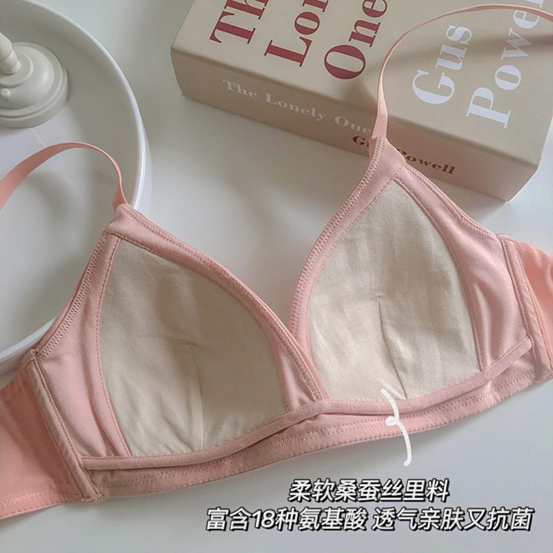 WRJ BOUTIQUE cotton mulberry silk French triangle cup underwear large chest small chest gathered without underwire bra