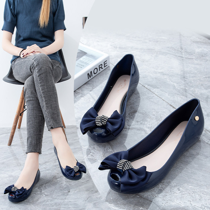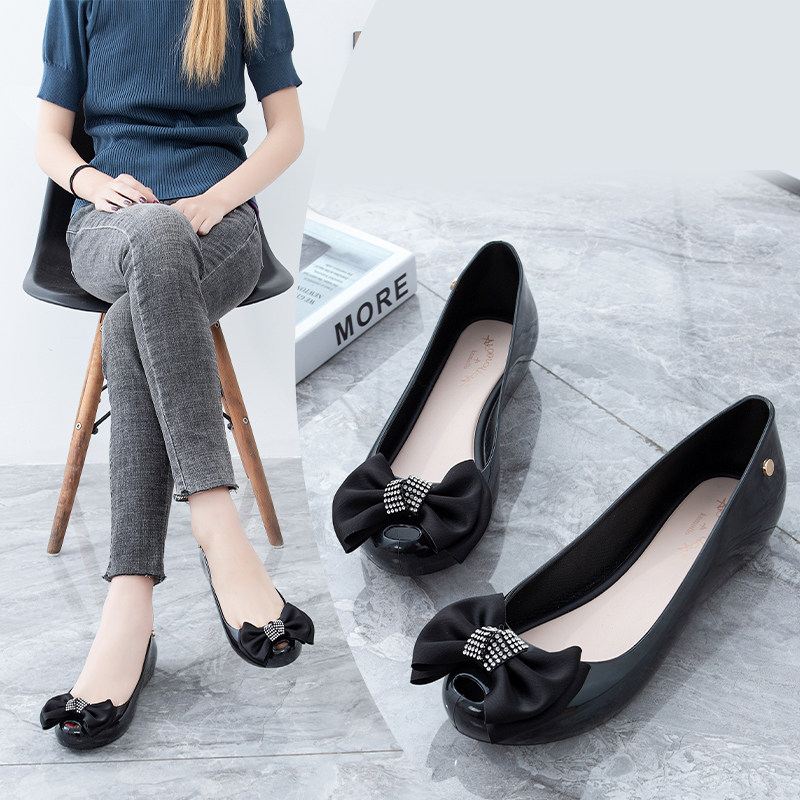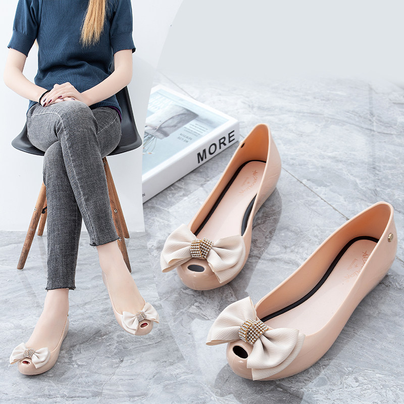 2020 new fish mouth crystal jelly shoes women's rain boots flat heel plastic waterproof fashion beach shoes non-slip soft sole