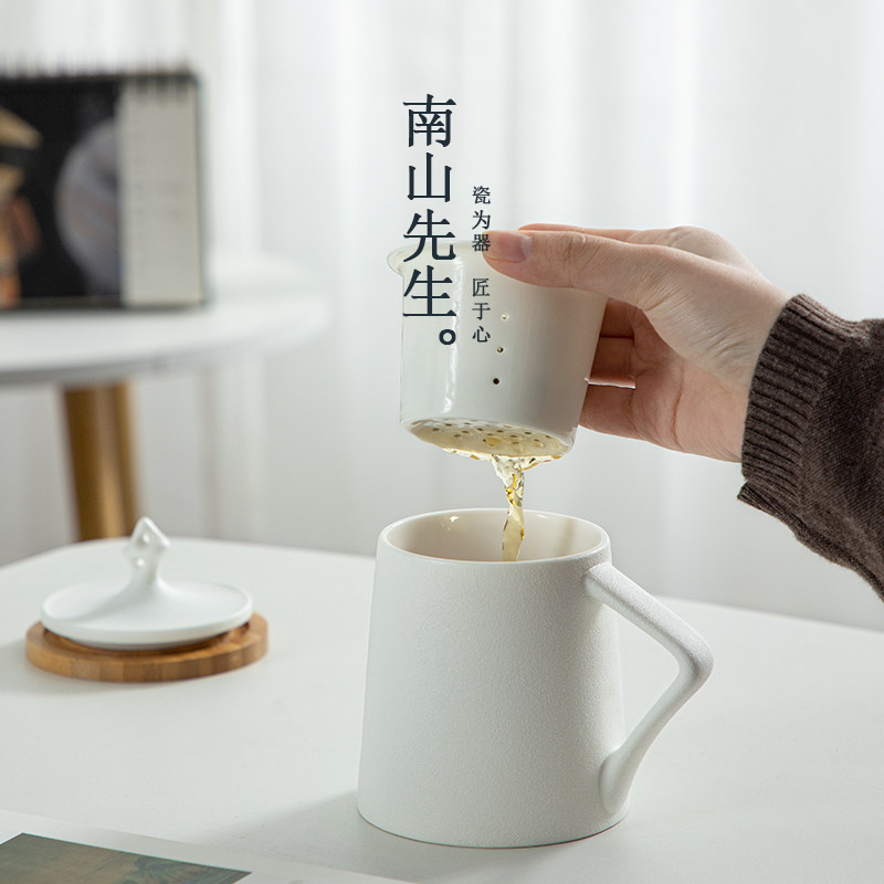 Mr. Nanshan Taihu stone mug with lid office tea cup filter water cup ceramic simple couple cup home