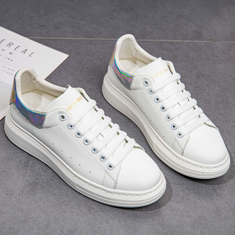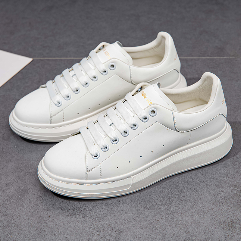 Solid color white shoes men's 2021 spring new all-match thick bottom Korean version trend couple leather heightening sports shoes