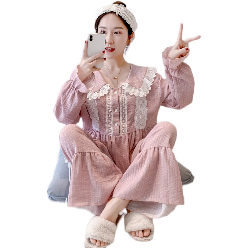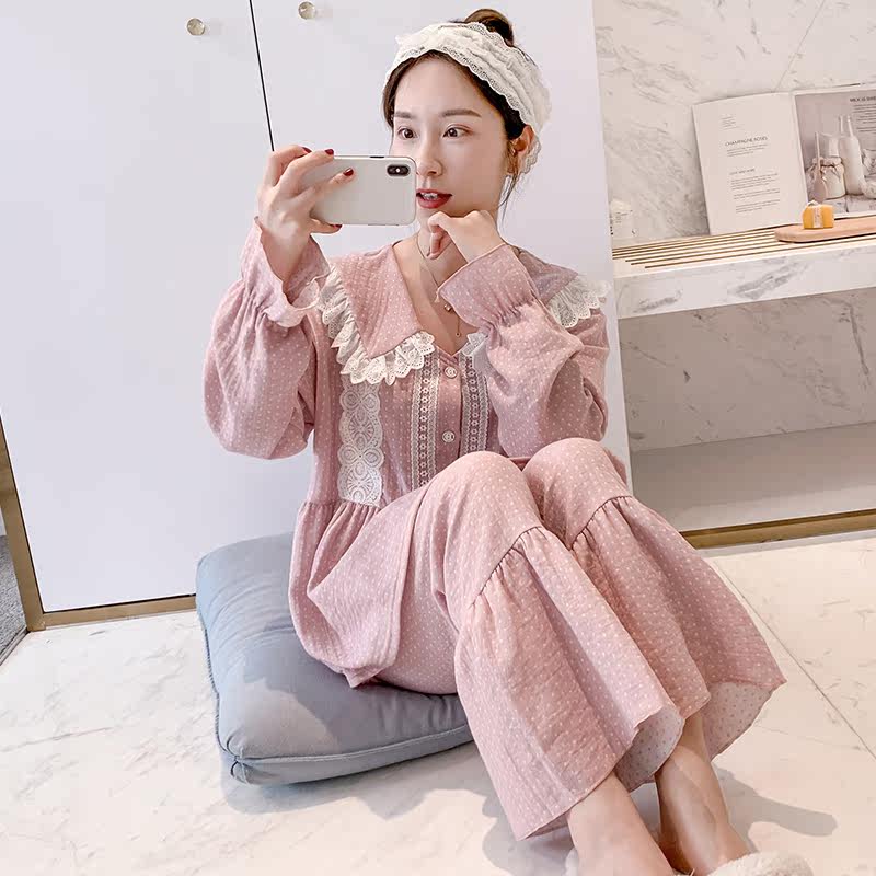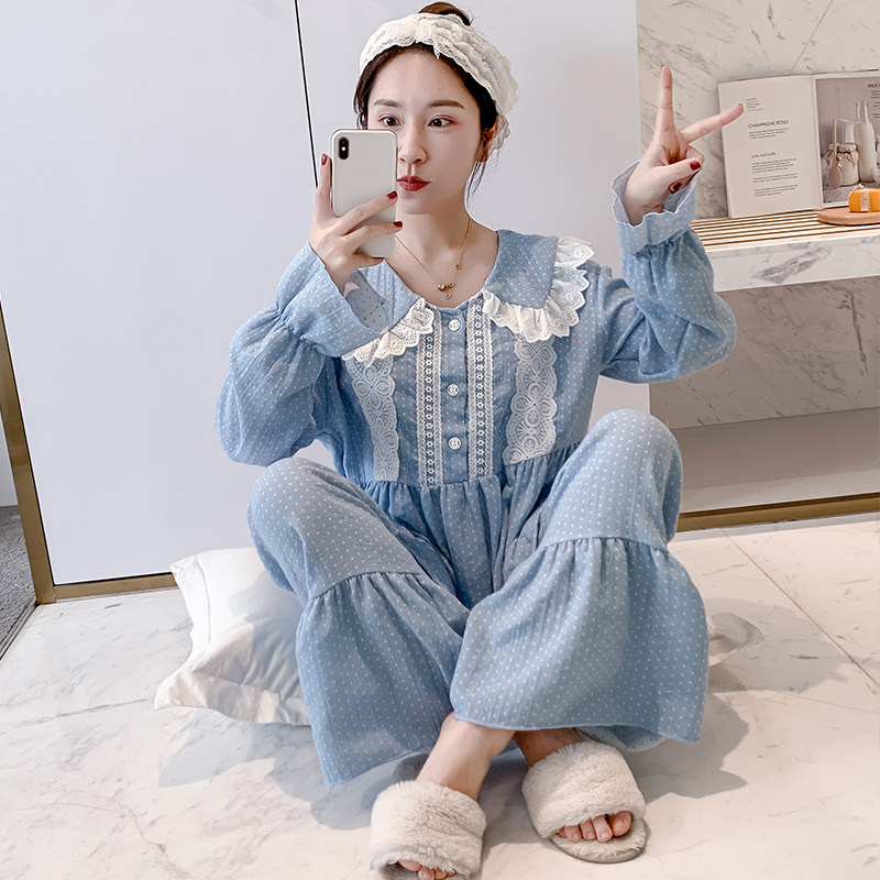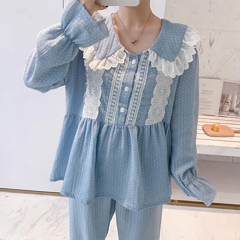 Women's pajamas long-sleeved pure cotton spring and autumn doll collar cute sweet princess wind girl cotton linen loose home service suit