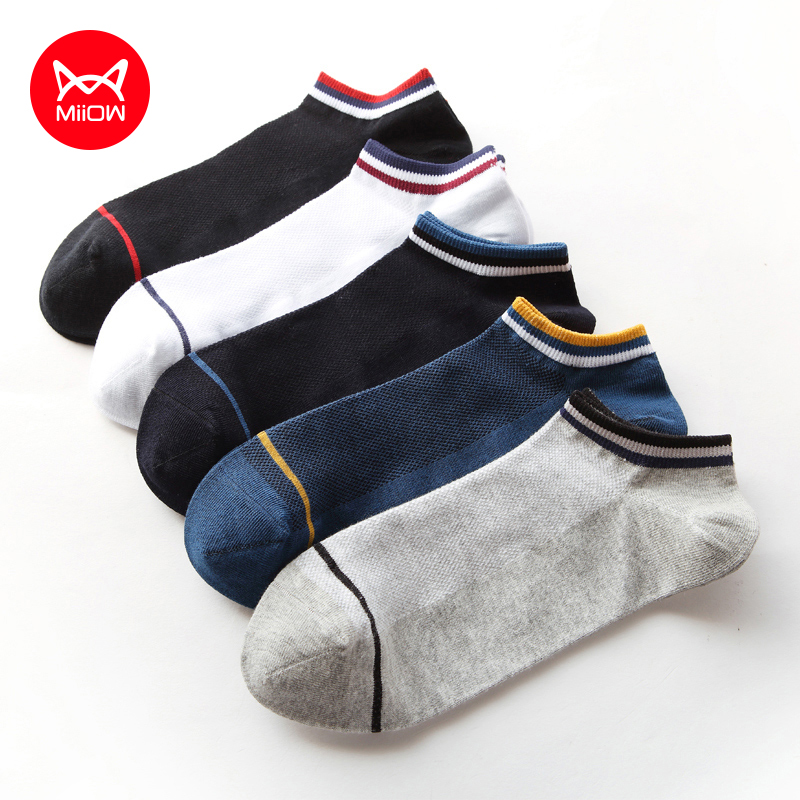 Catman socks men's pure cotton summer deodorant and sweat-absorbing thin socks men's cotton breathable youth black and white boat socks