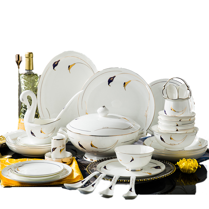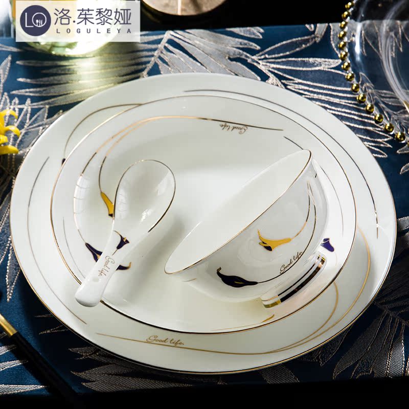 LO GULEYA bone porcelain tableware dish suit high-end European style gold side home light and luxurious bowls tray courtesy kit