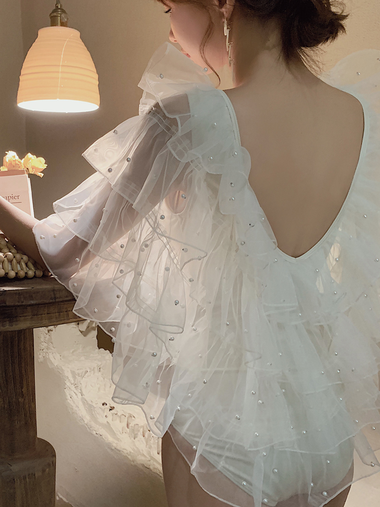 Vido's new ladies swimsuit pearl cover slim and conservative even bikini sexy open-back spa swimsuit