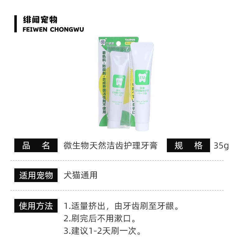 TAURUS Dole Taurus microbial natural tooth cleaning toothpaste 35g cat and dog general to remove plaque bacteria