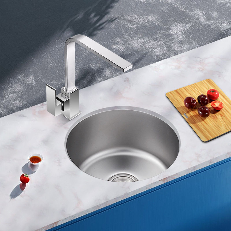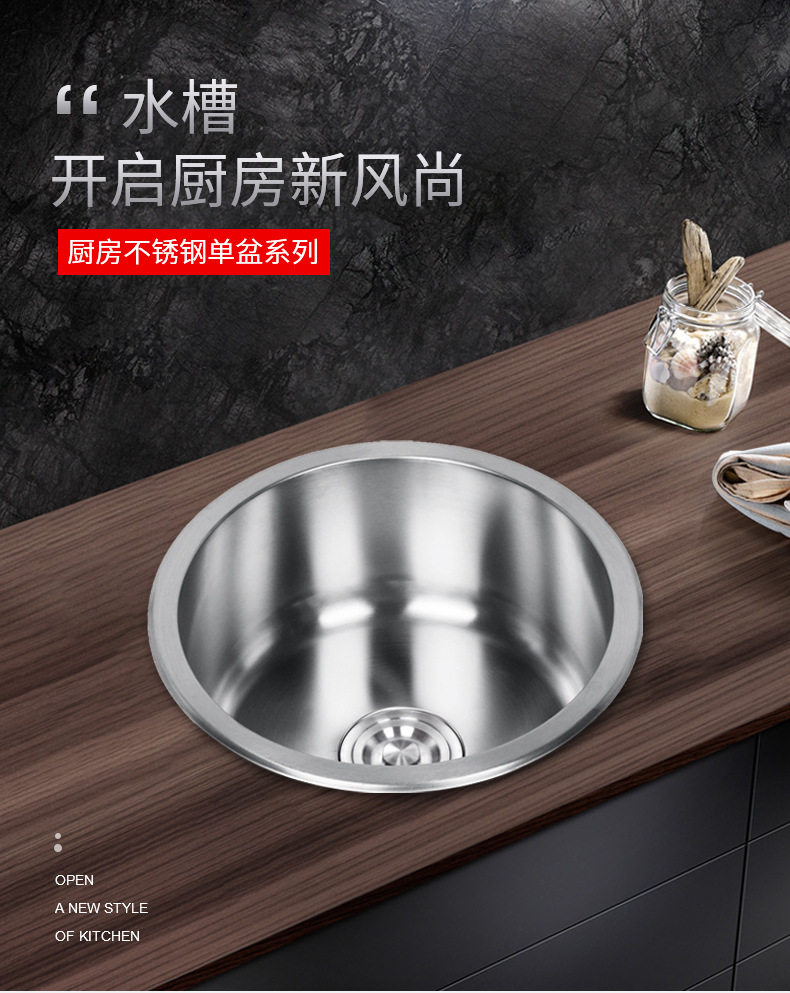 Round mini small sink single tank 304 stainless steel silver bar balcony kitchen sink under the table