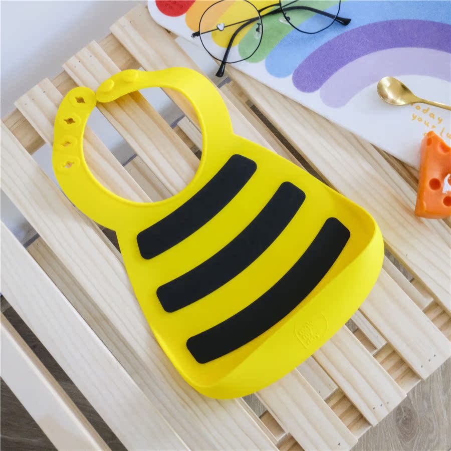 Out of America M* D large bumblebee baby Cubic waterproof dining around pocket Silicone Gel bib