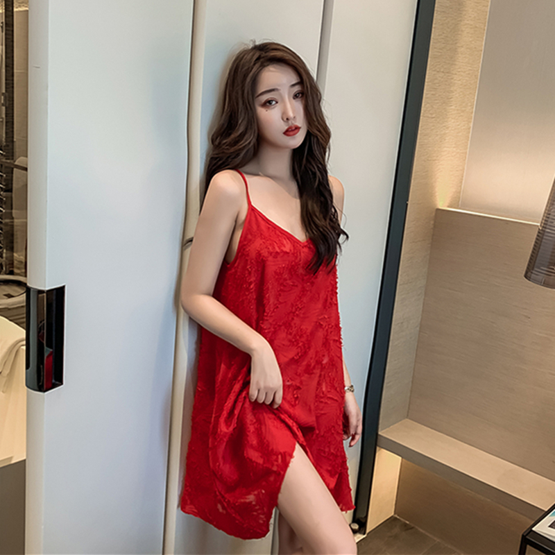 Large Code Harnesses Sleeping Skirt Mesh Yarn Lace Hollowed-out Fat MM Sleeping Skirt Big Code Lady Summer Sexy Cotton Pyjamas home clothes-Taobao