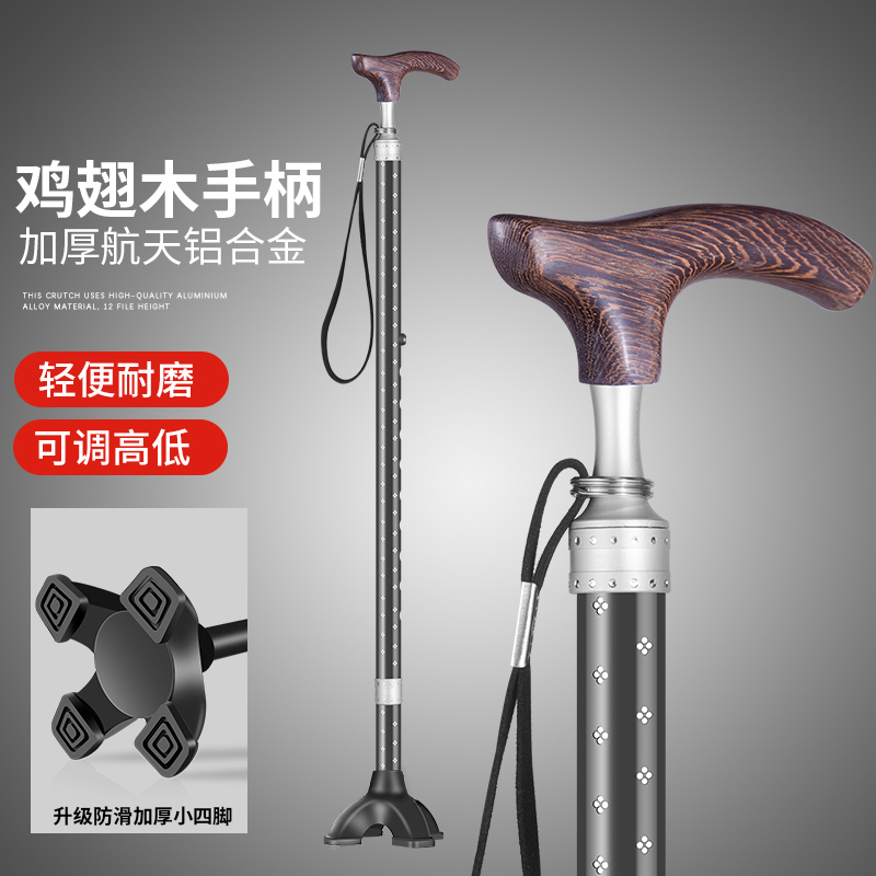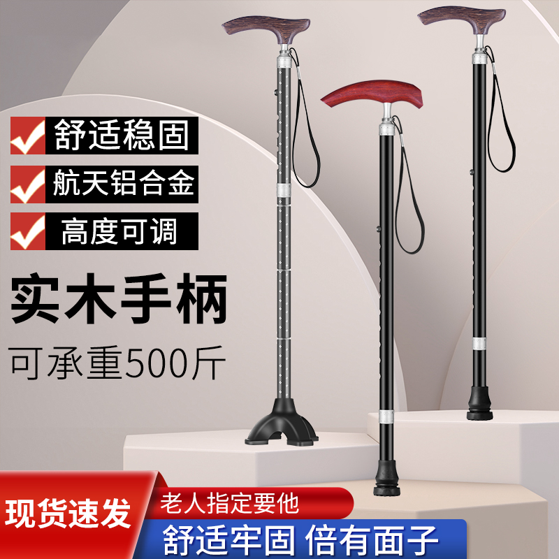 Hunting Cargucci Seniors Walking Stick Solid Wood Handle Flex Non-slip Cane Light Four Feet Fold portable Stick Crumstick