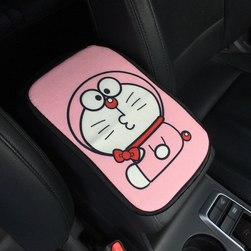 Front Row Car Central Armrest Pad Protective Cover Cartoon Cotton Linen Four Seasons Cute Female Car Decoration Car Interior Supplies