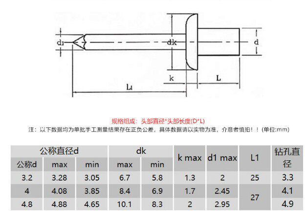 Dongming 304+420 Stainless Steel GB12615 Closed Blind Rivets with Break Mandrel and Flat Head Waterproof Rivets 3.2