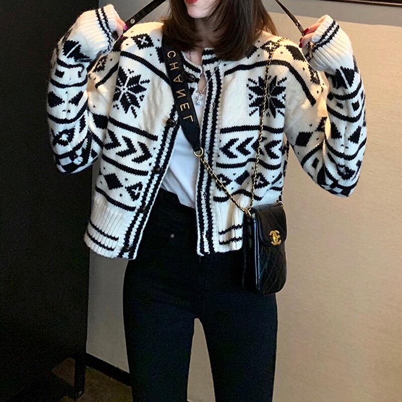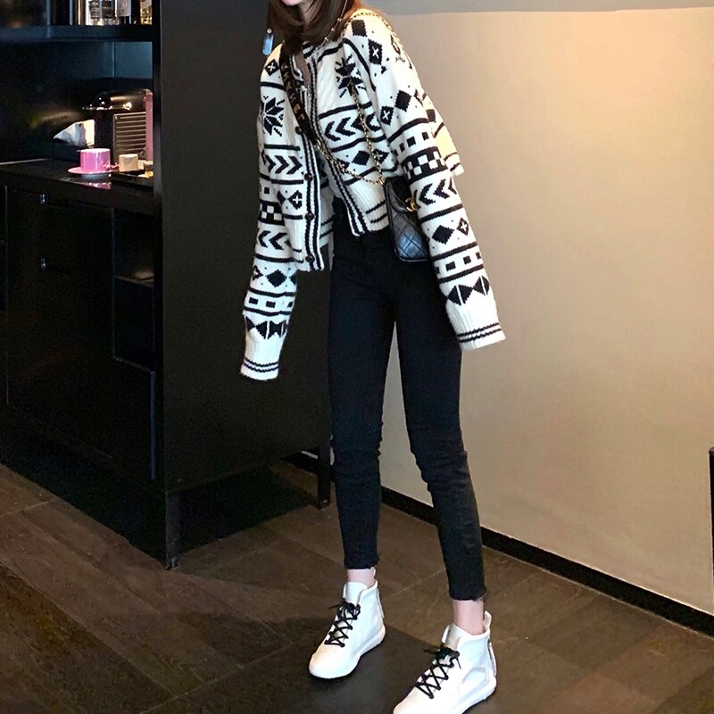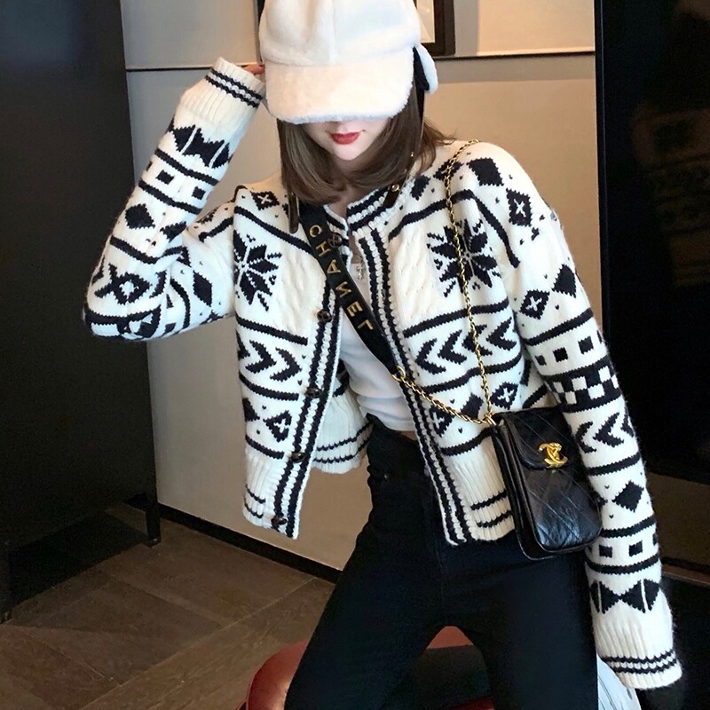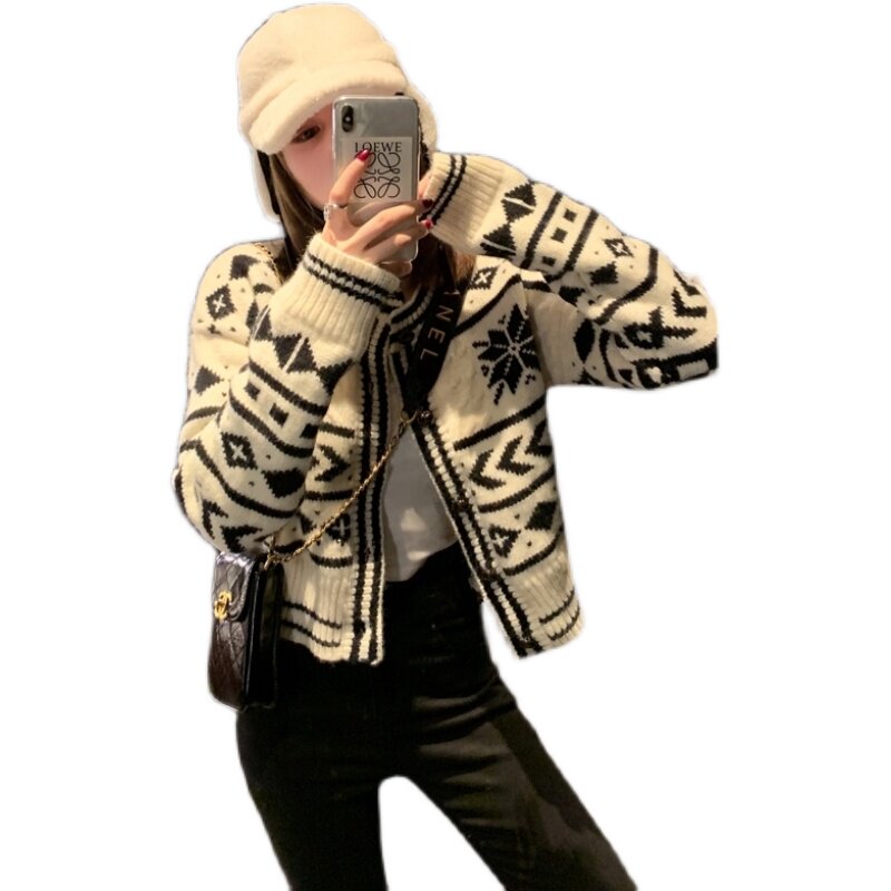 Sandro duffy spring small fragrant wind short style 100 lap sweaters Korean version Minus Age Foreign Pie Knit Cardiovert Coats Women