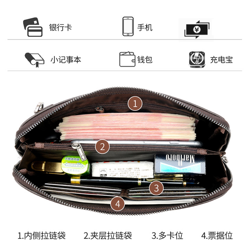 Large Capacity Hand Carrying Bag Handbags Men's Hands With Bag Code Lock Genuine Leather Hand Grip Bag Men's Wallet Handbag Male
