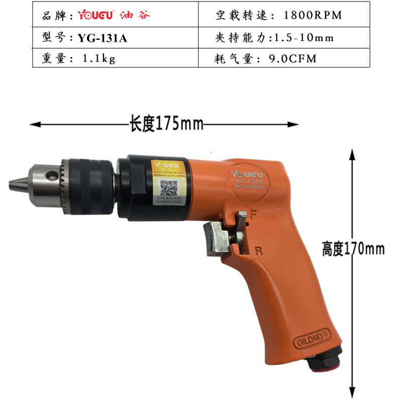 Taiwan Oil Valley Industrial Grade Pneumatic Electric Drill 10MM Air Drill Forward and Reverse Tapping Machine Adjustable Drilling Machine