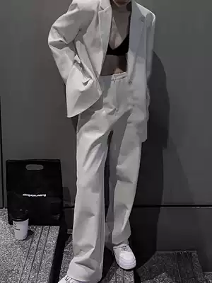 (Sitting and eating mountain air)White suit jacket female temperament spring loose design sense niche high-end oversize male