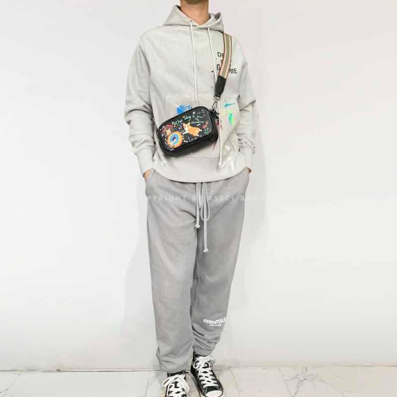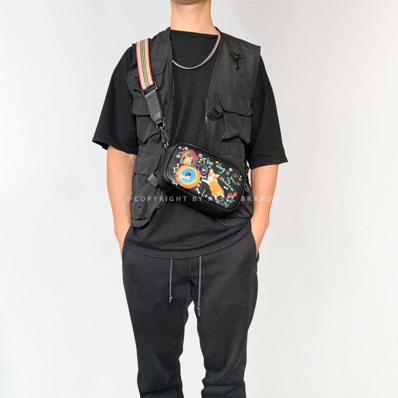 ASSCL trendy men's graffiti messenger bag leather niche design chest bag square bag personality creative hand-painted waist bag female ins