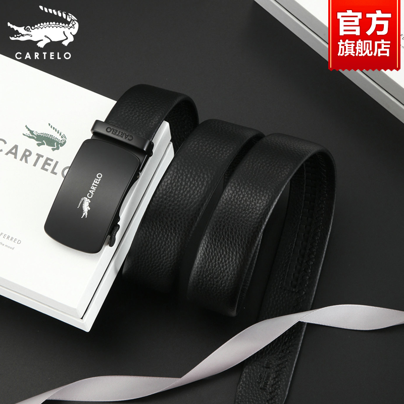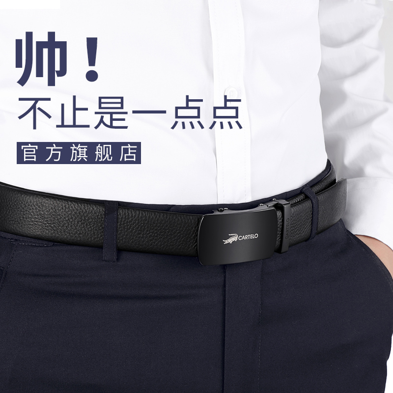 Crocodile men's belt leather automatic buckle trend youth simple high-end business pure cowhide pants belt men