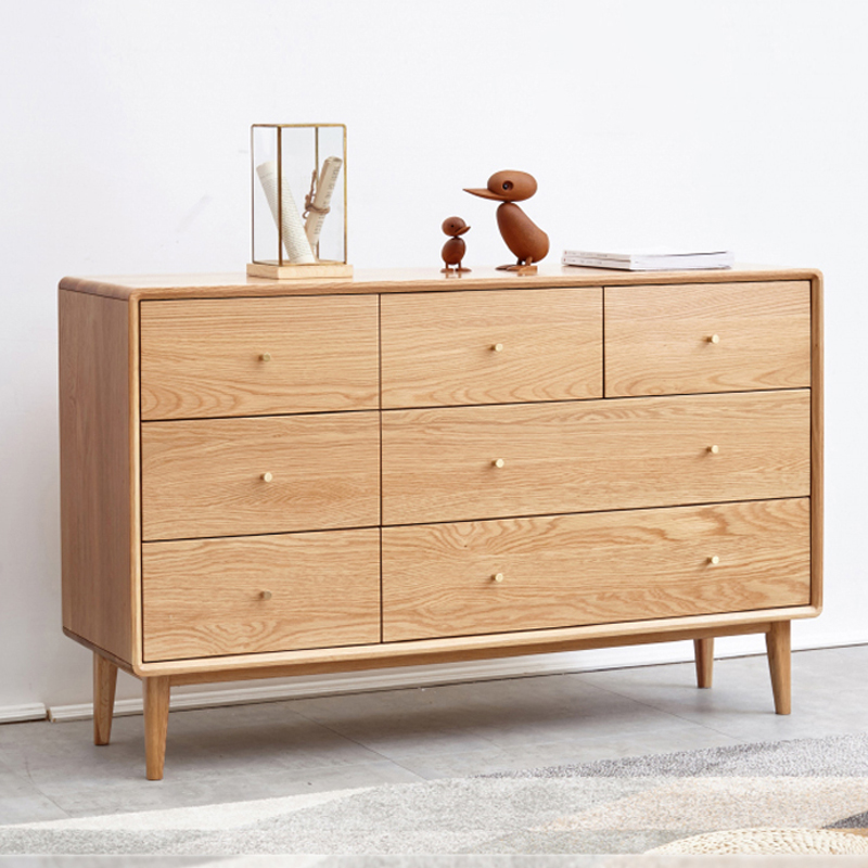 All solid wood seven-drawer cabinet simple oak seven-drawer cabinet Nordic seven-drawing bedroom storage Japanese-style mortise and tenon logs