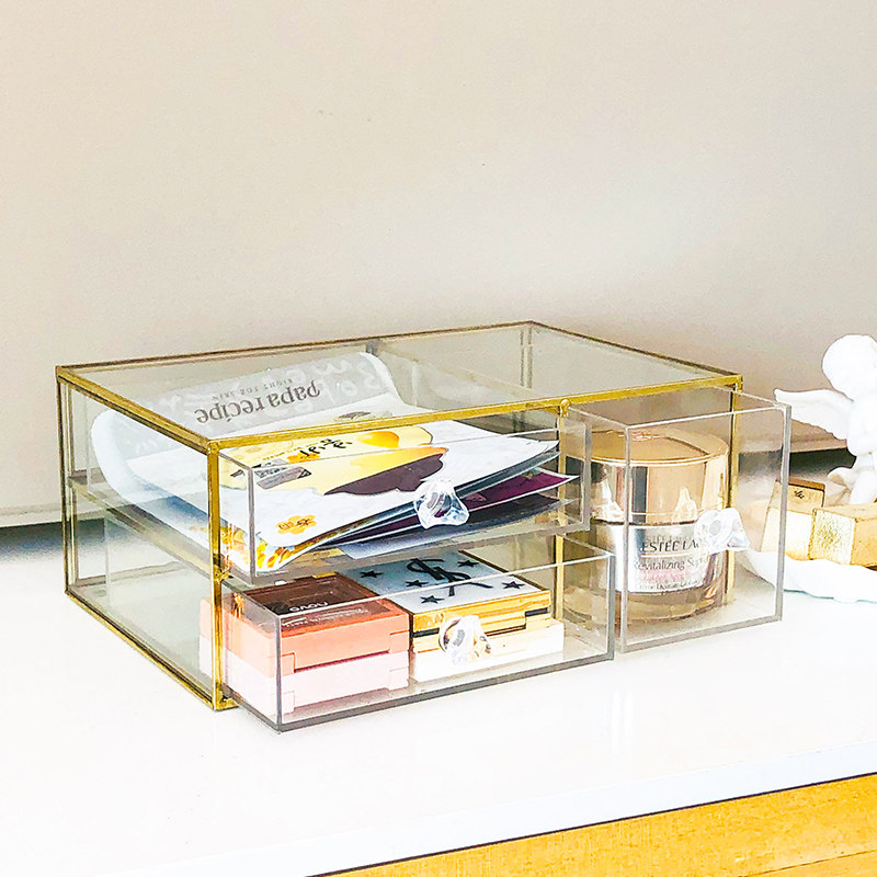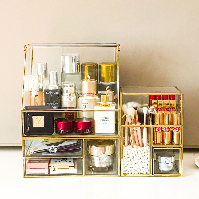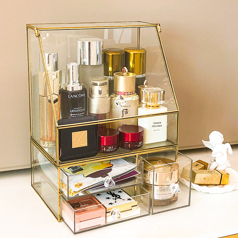 Net Red Cosmetics Containing box Glass Desktop Makeup Desk Home Dust-proof Red Brush Skin-care Products Shelf