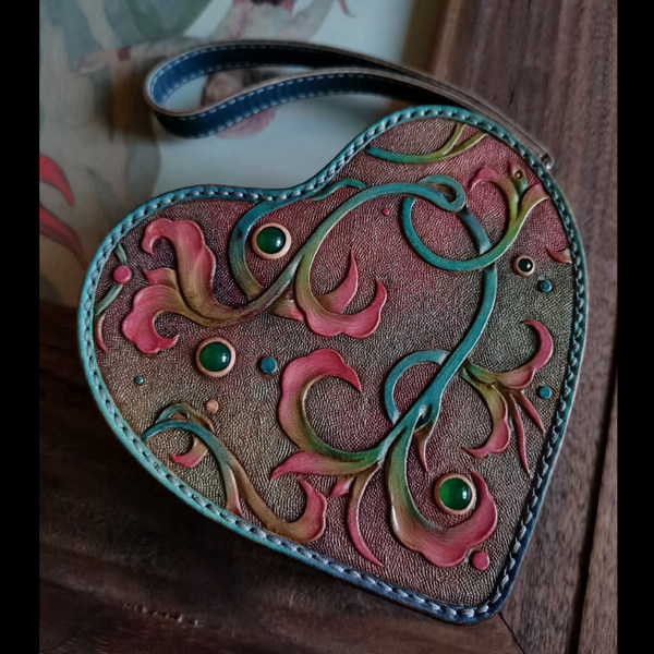 Handmade genuine leather women's bag ordered leather carved and painted classical tattooy inlaid green jade medullary carrying inclined cross-containing lipstick red packets