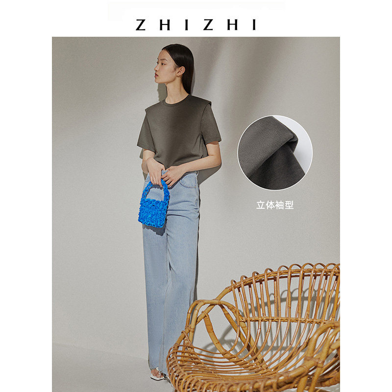 To know ZHIZHI vegetarian white T-shirt female spring summer round collar loose short sleeve design sensation acetate with positive shoulder