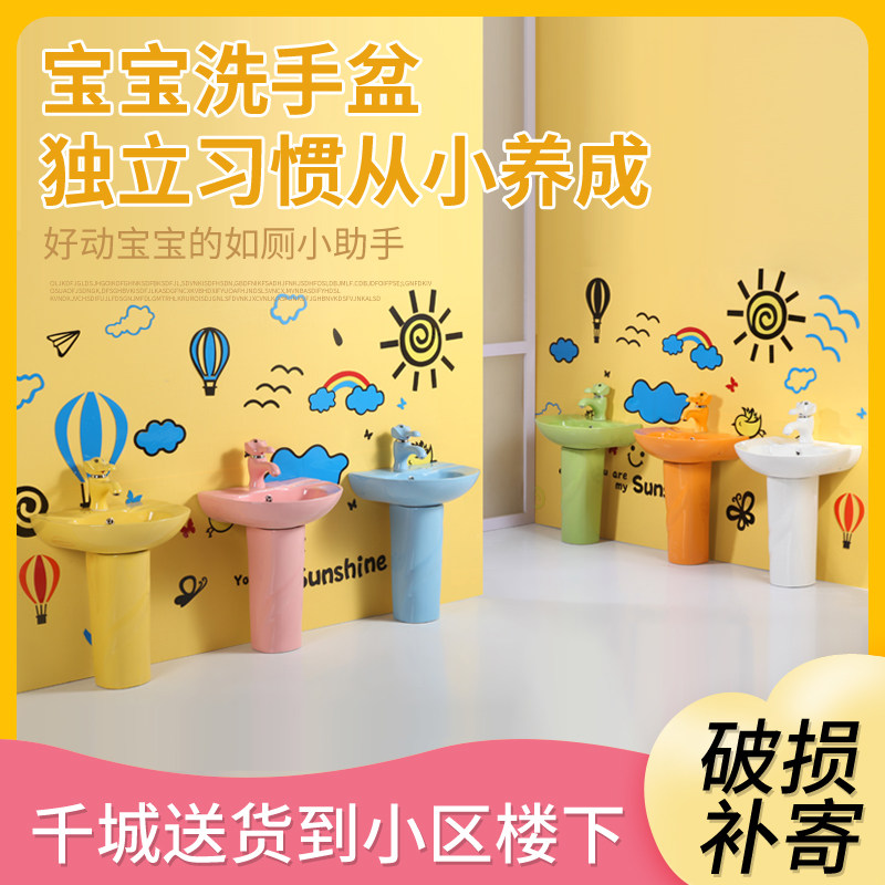Children's color column basin ceramic wash basin wash basin washbasin cartoon floor standing kindergarten school wash stand sink