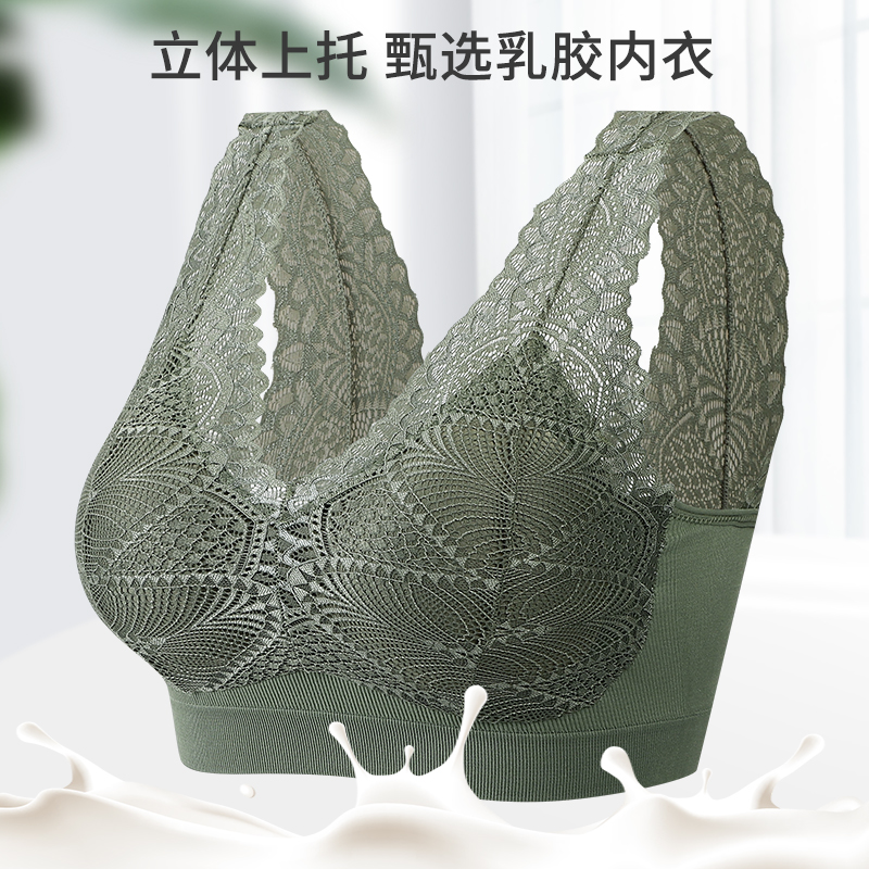 Latex underwear women's thin section without steel ring gathers and collects breasts and prevents sagging vest type lace sexy large size underwear cover
