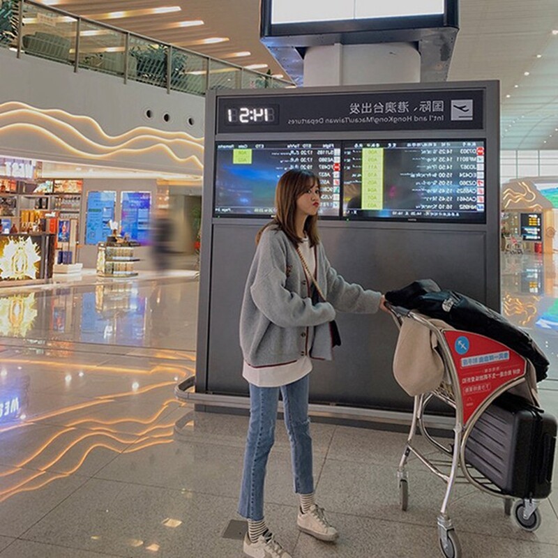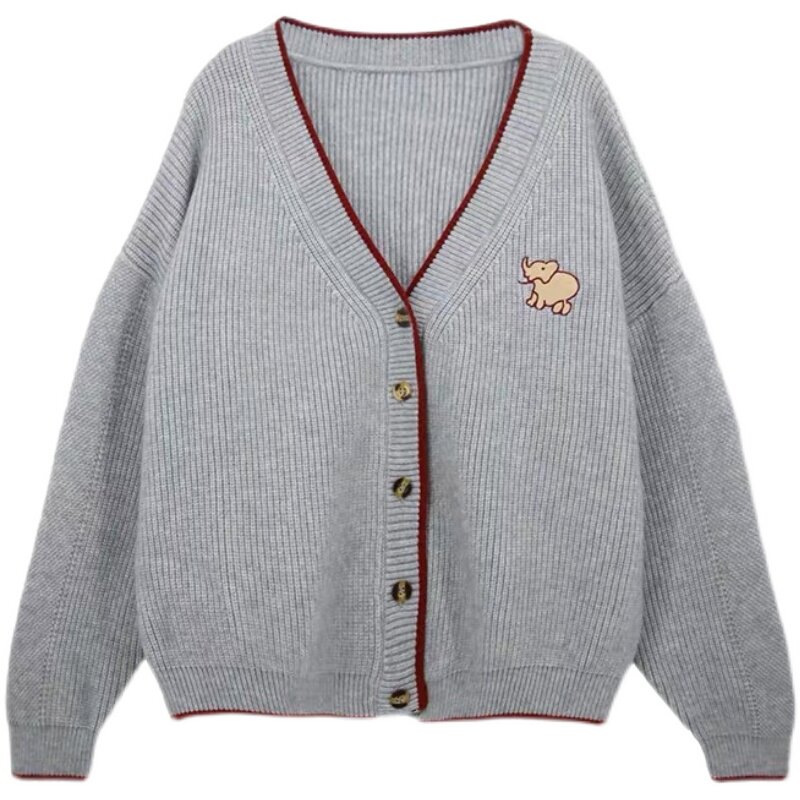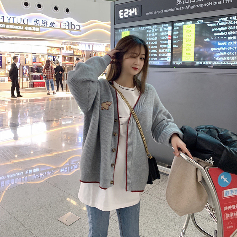 French maje22 early spring casual loose with lazy wind knit sweater with small scent of wind V collar cardiovert jacket woman