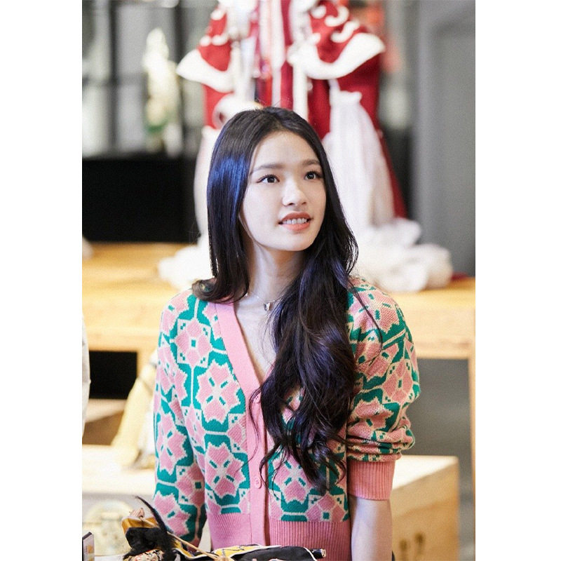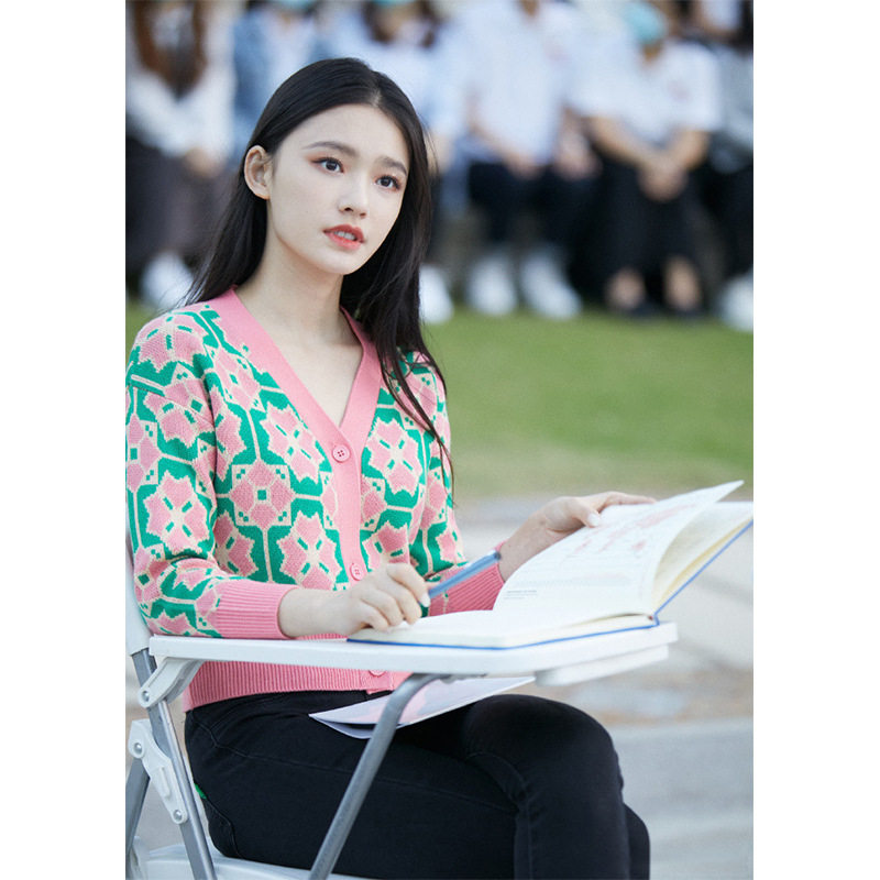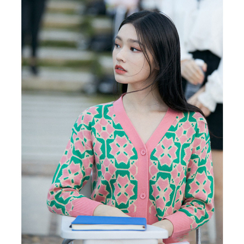 French maje Lin Yun star with the same diamond plaid retro knitted cardigan age-reducing short top