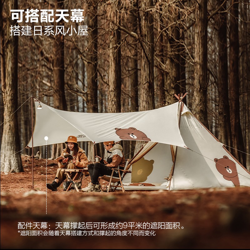 Mugao Di Line Friends Vitality Brown Bear Tent Outdoor Indian Pyramid Park Camping Rainproof