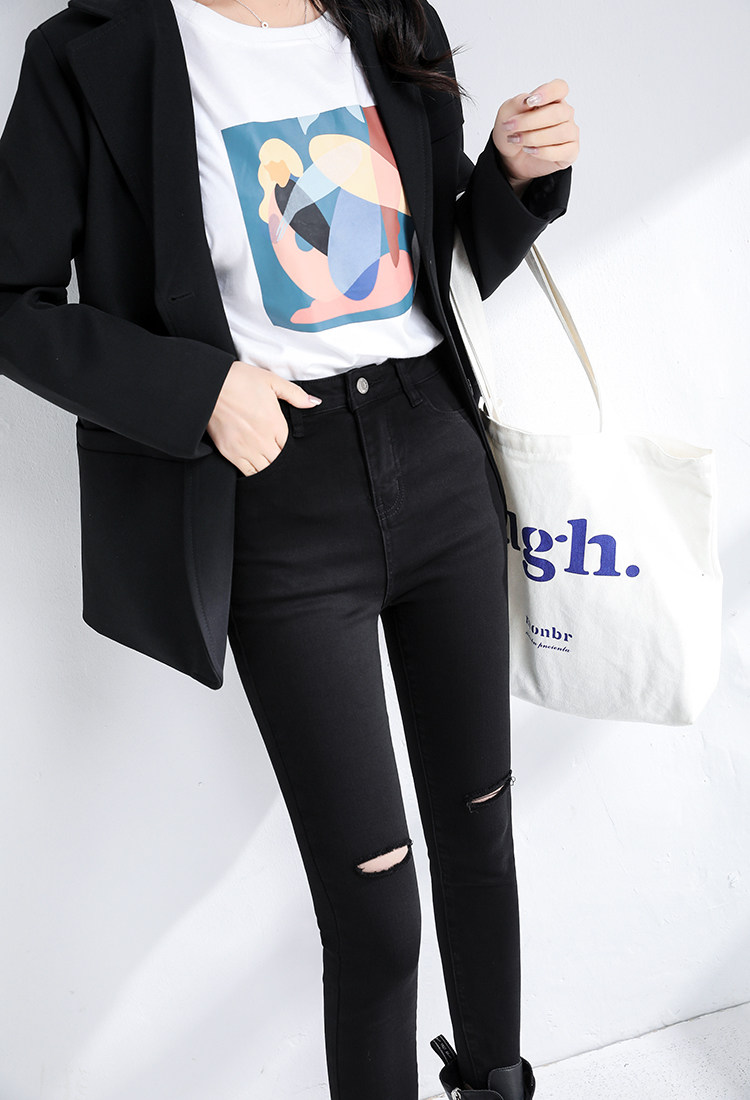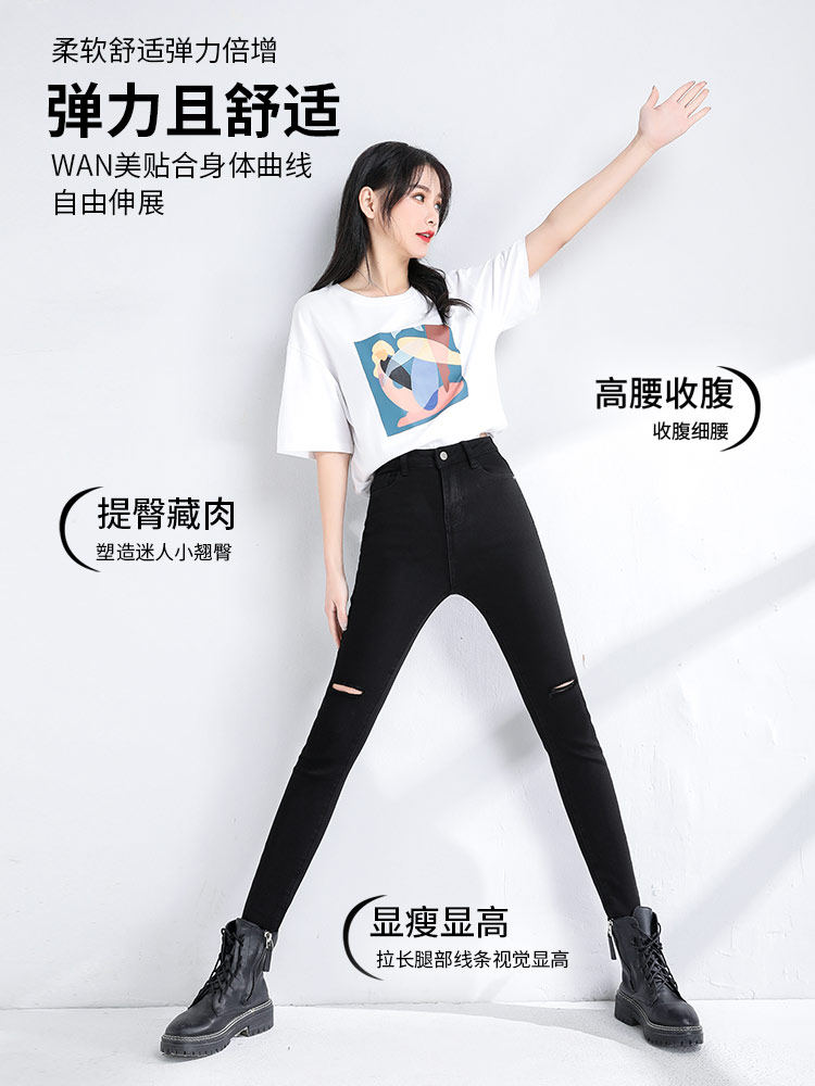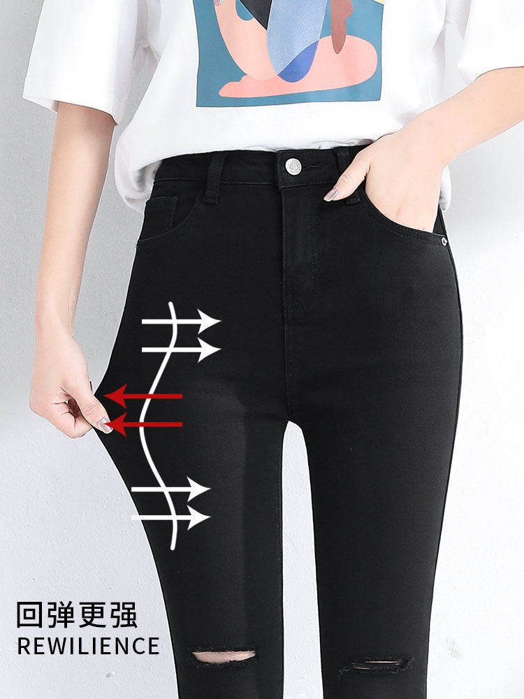 Black Broken Hole Jeans Woman 2022 Spring new high waist display slim fit stretch tight fit Korean version 90% pants