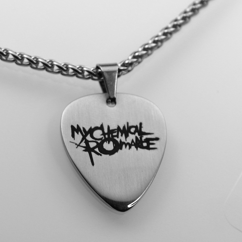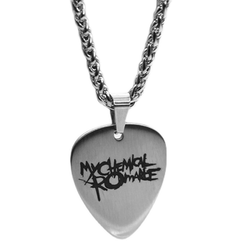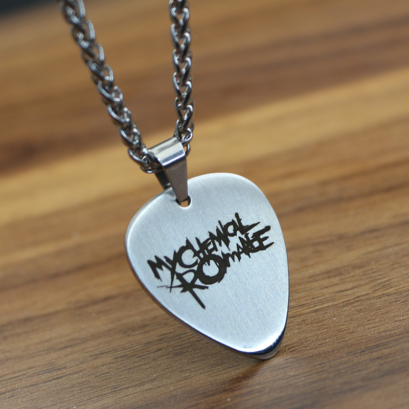 My chemical romantic rock lettering metal guitar pick pendant handmade carved accessories pendant custom necklace
