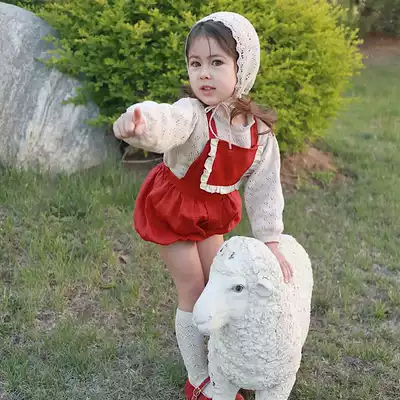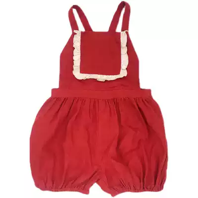 Red cotton linen hugging baby bag shorts red cotton print shirt milk tea cut-out sweater