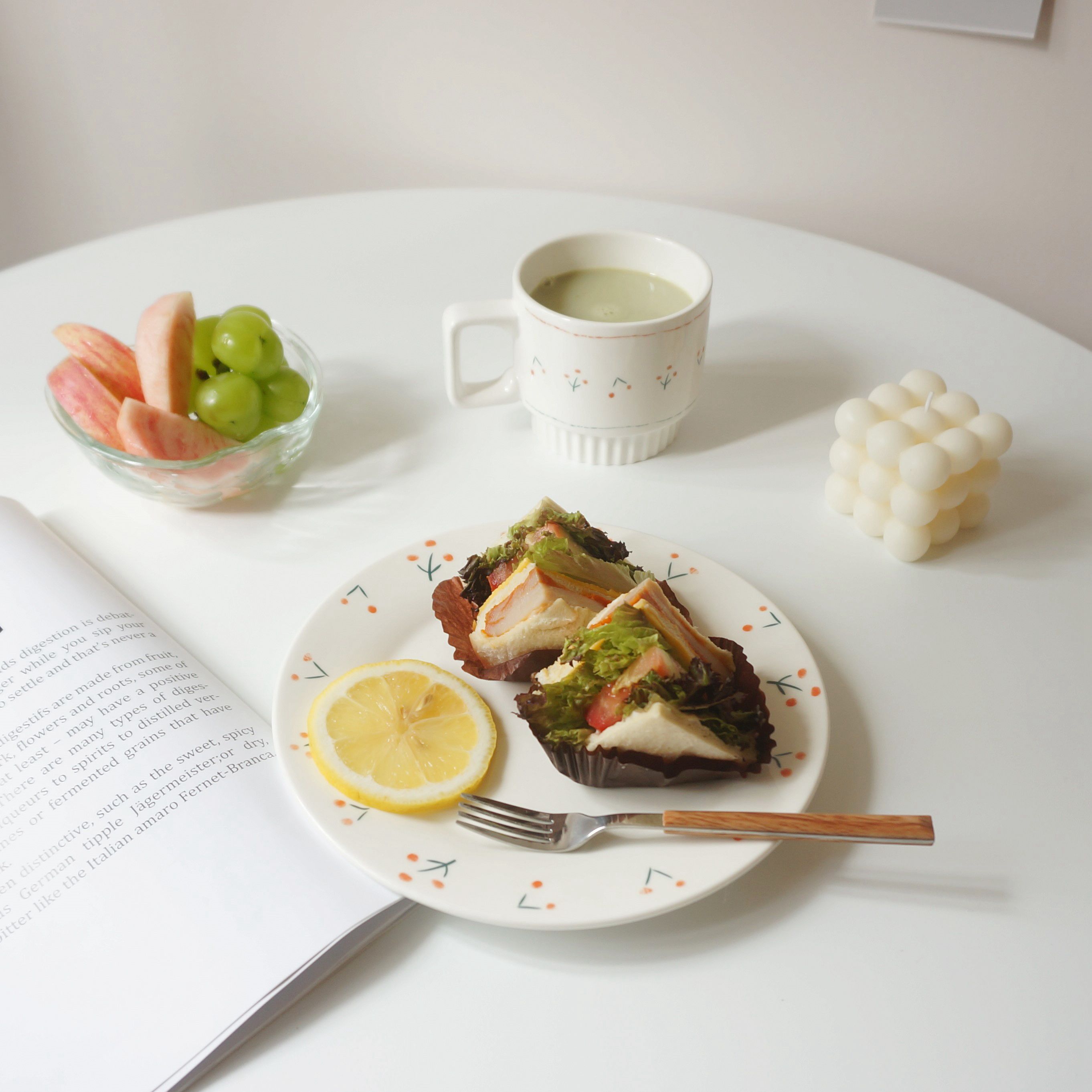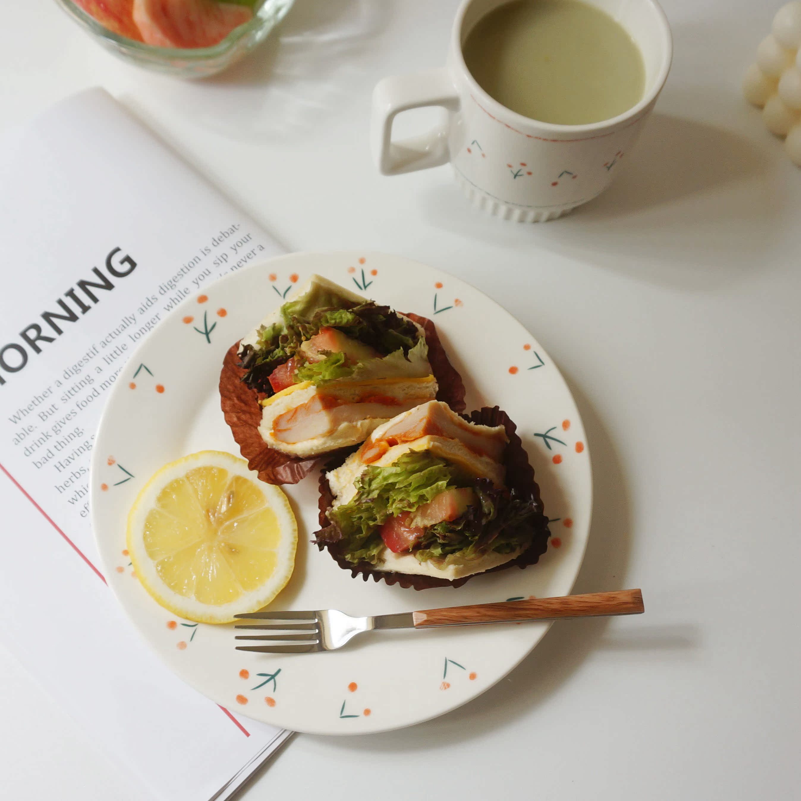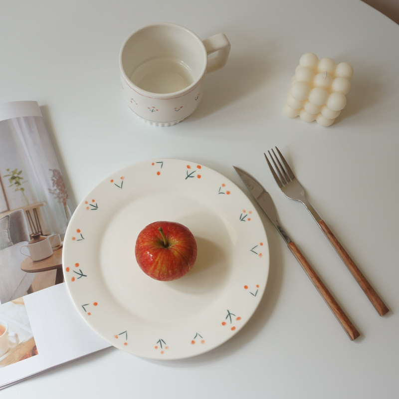 Korean ins style niche hand-painted cherry mug coffee juice water cup afternoon tea cup cake snack plate