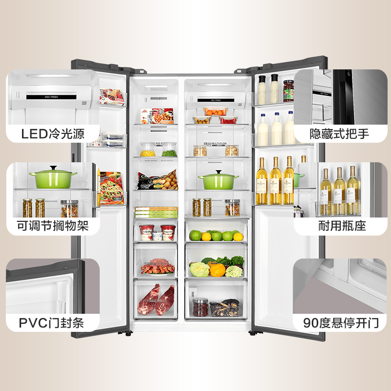 Haier Haier BCD-601WDGX 601 liters double frequency conversion multi-channel air supply to open color crystal glass fridge