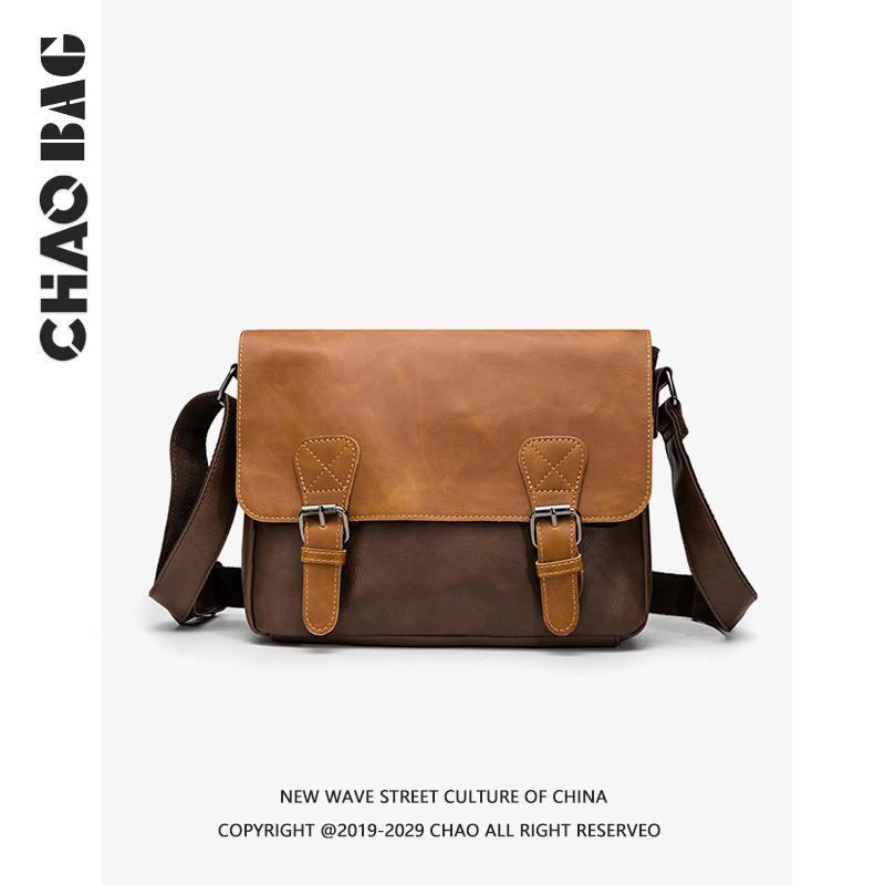 2021 new retro leather bag men's shoulder bag flip messenger bag casual cross-body bag Japanese men's bag backpack trend