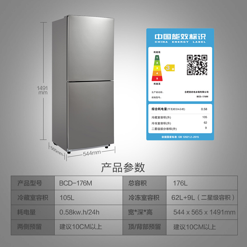 Midea two-door refrigerator BCD-176M mother, baby and child household small 176 liters two-door energy-saving bass refrigerator