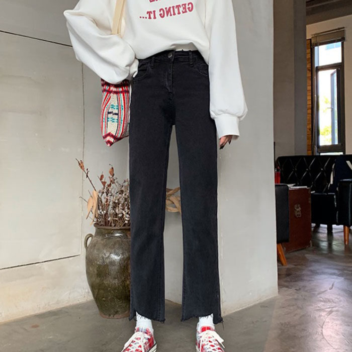 Small stretch straight jeans women's 2021 spring high waist slim all-match pants black nine-point cigarette pants