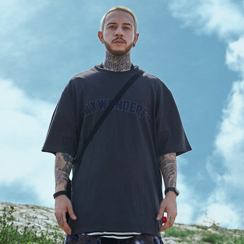 chic bishop street tide sign back letter printed pure cotton male loose large size oversize summer dress