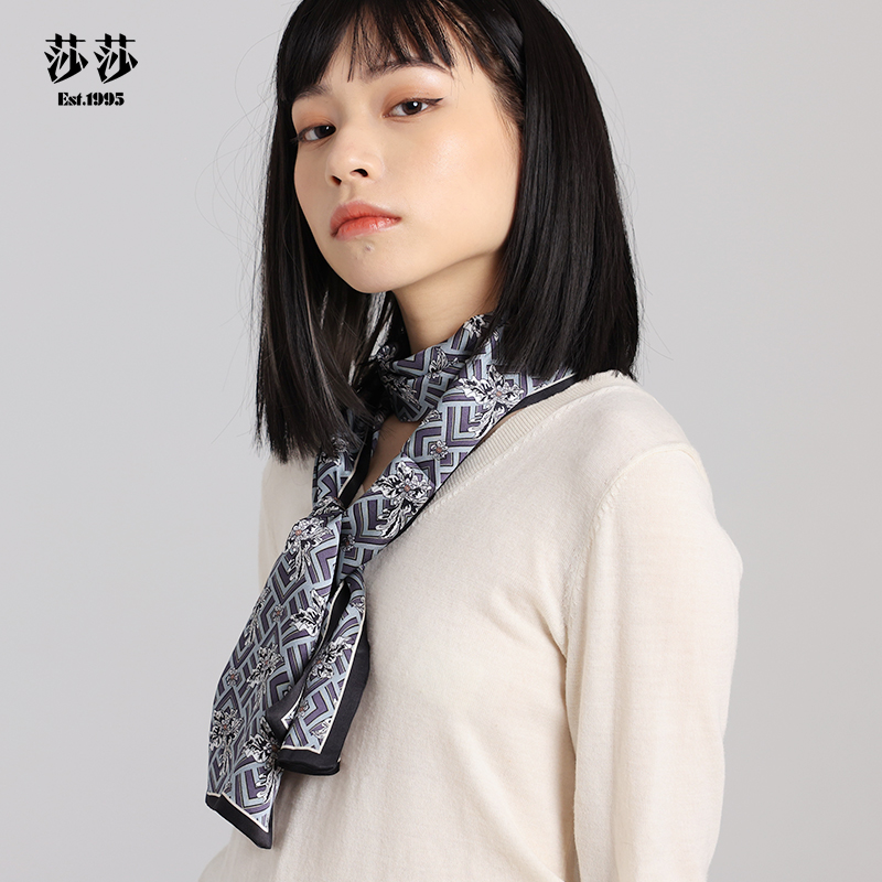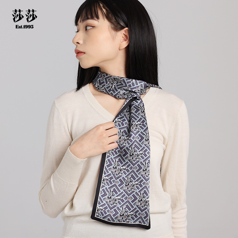 Salsa scarf female four seasons mulberry silk scarf double layer suit neck scarf streamer all-match small long scarf youth plaid flower