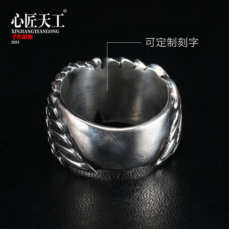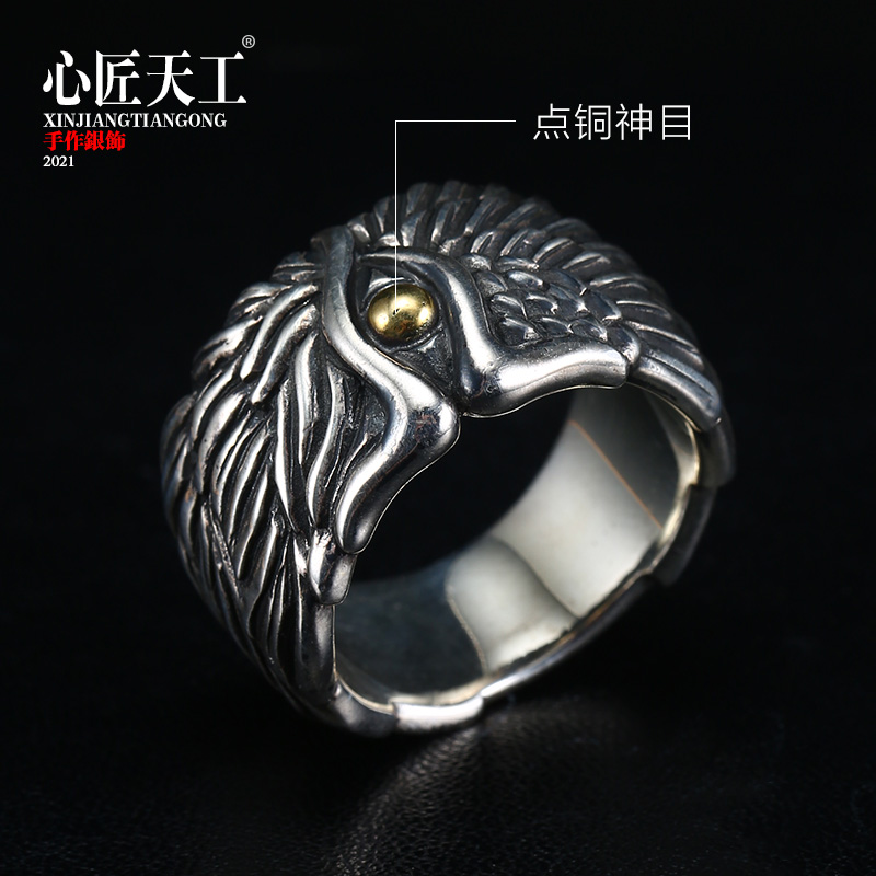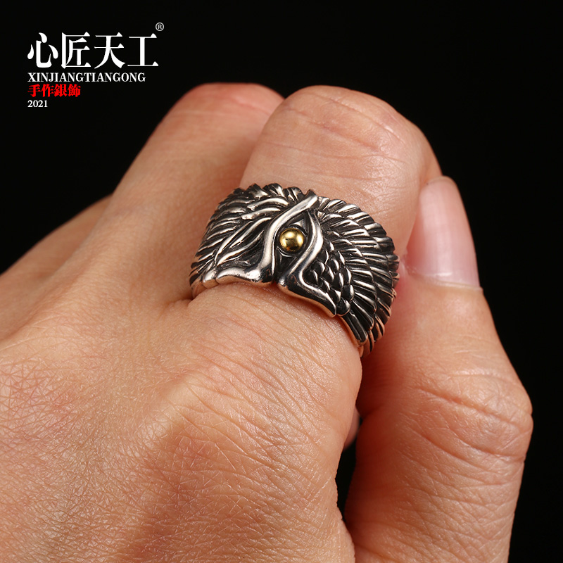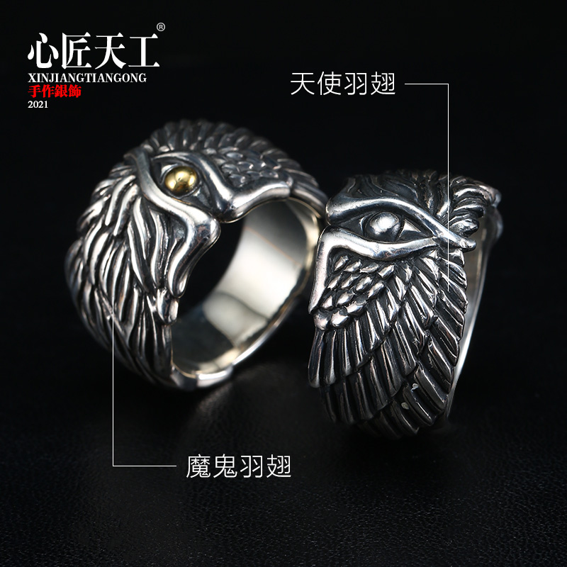 925 Pure Silver Ring Male Tide Personality Sky Make Wing Angel Devil's Devil Ring Women Ins Tide Index Finger Ring Custom Gift