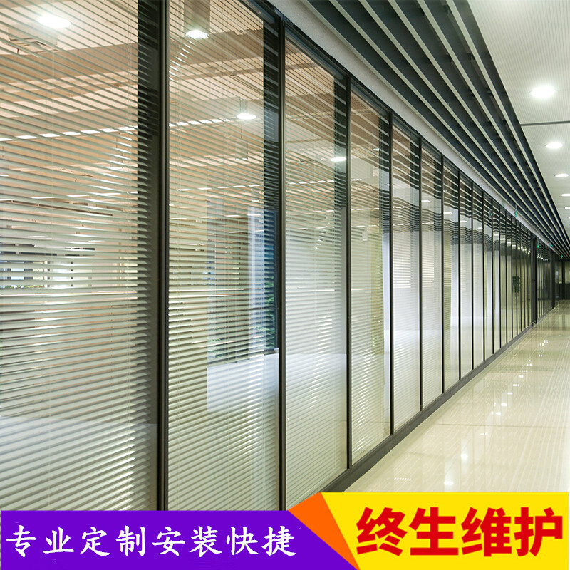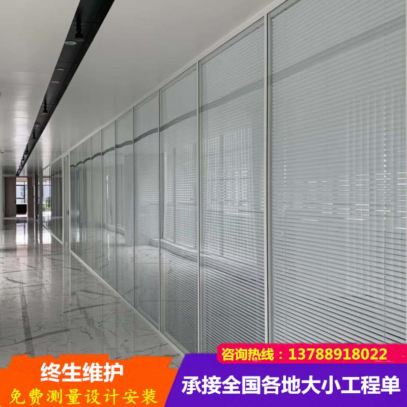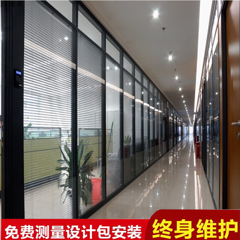 Office glass partition wall aluminium alloy double layer tempered glass high partition hollow shutter screen soundproof wall