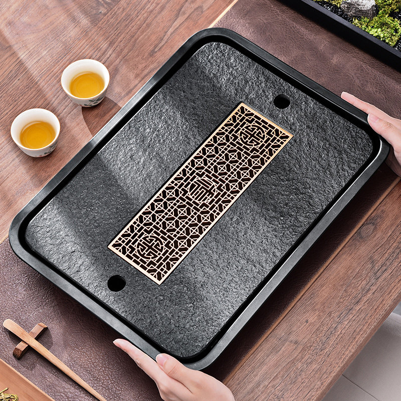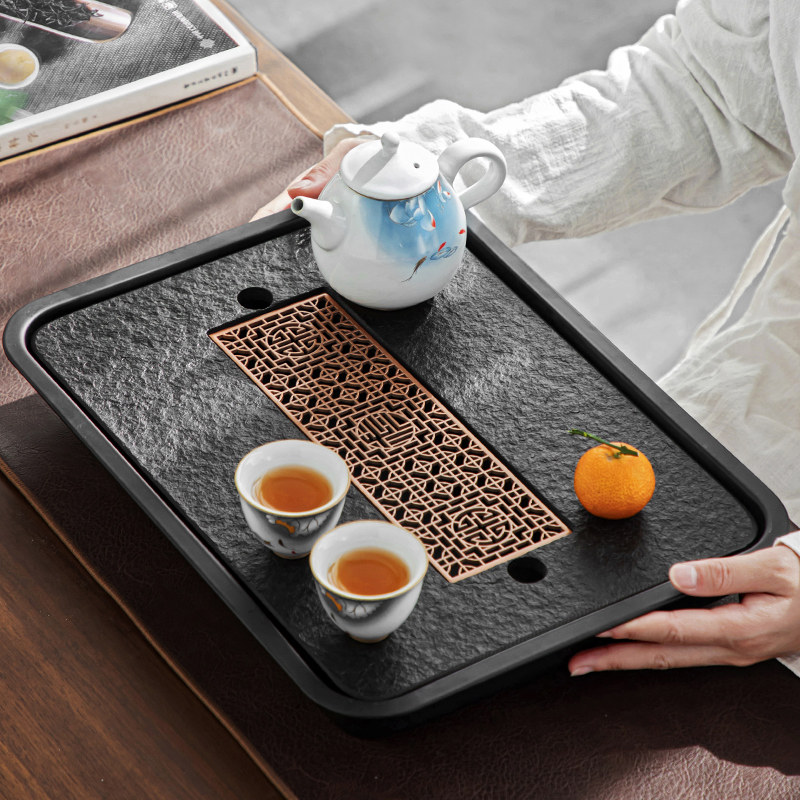 Wujin Stone tea tray household tea tray drain small luxury modern dry bubble table Japanese small tea table storage and drainage